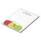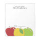 Teacher's personalized notepad accented with a colorful trio of apples. Ample writing space and editable text.