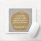 Painting of a gold apple in a picture of silver, with - "A word fitly spoken is like apples of gold in pictures of silver." Proverbs 25:11, printed on mousepads.