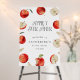 Rustic and sweet apple theme bridal shower welcome sign featuring watercolor illustration of apple fruits. The text says "apple-y ever after."