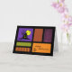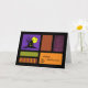 This Halloween card looks like a hand-appliqued patchwork of orange, purple and black fabrics with a haunted house and pumpkin.