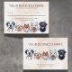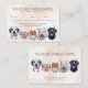 A charming appointment reminder for your clients with sweet dogs with bubble and soapy foam on their head. Showing the client how their sweet pet will be pampered and treated like royalties at your pet grooming business. Black labrador, poodle, old english cheepdog, pomeranian and a dalmitian. Avalible with background in different watercolors hues, and simple classic plain white.