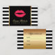 Makeup Artist Red Lips Modern Black White Stripes Appointment Cards.