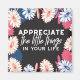 "Appreciate the little things in your life" quotes with daisy flower pattern.