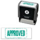 Approved green ink Self-inking rubber office stamp. Handy to ratify documents and private papers. Personalized school and office supplies. Vintage border and typography template. Custom sign stamps for teacher, office worker, business employee, coworker, boss, corporate company manager, job, staff, personnel, etc.