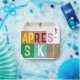 Modern ski-themed après-ski design, in colorful color blocks and colored letters. Alpine ski opening, ski resort, ski home design. Wonderful winter sports fun gift for a skier in your circle of friends, co-workers, or family. Retro skiers artwork design. Skiers skiing ski home decor, Ski team, ski coach gift.