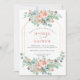 This wedding invitation radiates soft romance and countryside charm, framed by a delicate cascade of pastel florals—roses, peach blossoms, and creamy petals nestled among gentle greenery. The arrangement creates a graceful border that draws the eye inward, while the clean, centered layout and ample white space lend an air of elegance and calm. With its muted palette and botanical accents, the design evokes a warm, heartfelt celebration—perfect for a summer afternoon at a scenic venue.