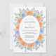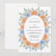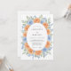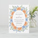 This botanical design features a lush arrangement of watercolor apricot and azure roses. Delicate sage green foliage and tiny cornflower blossoms create a soft, romantic atmosphere for a seasonal ceremony. The color palette of warm peach and cool sky blue offers a fresh, whimsical aesthetic perfect for a sunny outdoor event.
