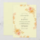 This design features a soft, ethereal palette of pale yellow and warm apricot hues. Delicate watercolor roses and orange-toned foliage create a romantic, airy mood perfect for a spring or summer event. The artwork showcases graceful botanical elements like roses and berry sprigs appearing around the perimeter.