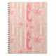 Apricot peach pink floral striped pattern notebook