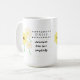 This coffee mug showcases beautiful artwork of April's birth flower, daisy, and its symbolism.