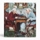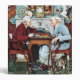 Artist: Norman Rockwell | The first in a series of 3 painted by Norman Rockwell in honor of April Fool's Day. This is more than a couple at table by a fireplace. Can you find the many comical errors in the illustration?