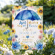 Blue Umbrella April Showers Bring May Flowers Sunflowers Floral Baby Shower Invitation