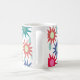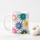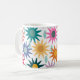 This mug has a design of flowers and raindrops on a white background.