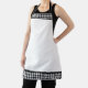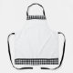 This apron is shown as is in a black, grey and white colored gingham print.