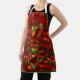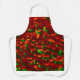 An apron in beautiful red tones, an abstract design reminiscent of rose petals, in between a little green for abstract leaves.