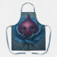Delantal artístico y único con diseño surrealista: una rosa azul de pétalos plateados guarda en su centro una cebolla morada con ojos llorosos. Ideal para amantes del arte, la cocina creativa y los regalos originales.