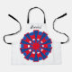 Great color and even though I ordered the kid size, it covers well enough to use during the holidays. I am not a big woman and prefer a shorter apron. I stand 5"6" and the length of the garment goes to mid-thigh. The tie straps fit well at my waist and even though there is no neck strap adjustment, the opening is plenty big enough. I am happy with the size and fit. I am sharing my apron with my 10 year old grandson, too! The color is vibrant and looks good, as shown on the website. The stitching looks strong and reinforced. Photographed is front side and back side of the apron, reinforced straps and coloring. My phone camera may not be the best at showing the details.