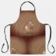 Great color and even though I ordered the kid size, it covers well enough to use during the holidays. I am not a big woman and prefer a shorter apron. I stand 5"6" and the length of the garment goes to mid-thigh. The tie straps fit well at my waist and even though there is no neck strap adjustment, the opening is plenty big enough. I am happy with the size and fit. I am sharing my apron with my 10 year old grandson, too! The color is vibrant and looks good, as shown on the website. The stitching looks strong and reinforced. Photographed is front side and back side of the apron, reinforced straps and coloring. My phone camera may not be the best at showing the details.