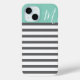 Aqua and Charcoal Preppy Stripes Custom Monogram Case-Mate iPhone Case