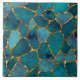Aqua and Gold abstract pebble cells N1 Ceramic Tile