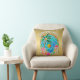 Aqua and Gold Ocean Palm Tree Summer Landscape Throw Pillow