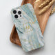 Aqua and Gold Printed Marble Texture Monogrammed Case-Mate iPhone Case