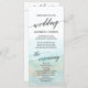 This aqua and gold watercolor beach wedding program is perfect for a tropical destination wedding. The simple and modern design features stunning turquoise, teal and light blue watercolor with a soft gold sparkle reminiscent of the sand and sea. It's paired with gorgeous elegant calligraphy. Include the name of the bride and groom, the wedding date and location, thank you message, order of service, bridal party and an optional "in loving memory" memorial.