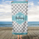 Aqua and Gray Quatrefoil Monogrammed Bath Towel. Simply edit text to personalize!