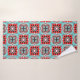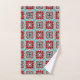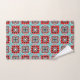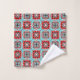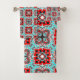 A colorful bold red and bright aqua green pattern comprised of intricate tiles livens up your bathroom decor