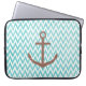 Aqua and White Chevron Glitter Anchor Laptop Sleeve
