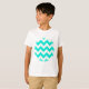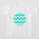 An abstract colorful image of an aqua and white striped chevron pattern.