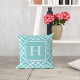 Aqua and White Geometric Bamboo Lattice Monogram Throw Pillow