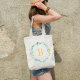 Aqua and Yellow Monogrammed Floral Wreath Tote Bag