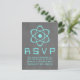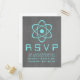 Cute and nerdy Atomic Chalkboard Wedding Response Card featuring a simple atomic symbol in turquoise on a chalkboard look background. This geeky and fun wedding RSVP postcard is perfect for the science enthusiast couple! Easy to customize, simply add the details of your wedding in the spaces provided. Click "Customize It" to find more personalization options.
