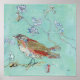 Aqua Bird by Kellie Day. Small songbird created with varying textures to add depth. Background is a beautiful teal with small blue flowers.| SID21474