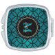 Aqua Black Abstract Circles Pattern Compact Mirror