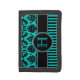 This personalized turquoise blue blue, black and white damask with striped pattern nylon tri-fold wallet is a great way to show off your personality! Customize it to have your monogram, initials or other text on it. If you need assistance, email niteowlstudio@gmail.com.