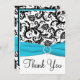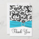 Aqua, Black, White Damask Thank You Card