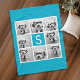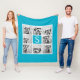 Aqua Blue 8 Photo Collage Custom Monogram Fleece Blanket