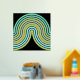 Beautiful contemporary aqua, turquoise, blue, jade green, and real gold foil colored geometric abstract wave lines pattern on a black background. Elegant, stylish, and eclectic minimalism design for the artistic hip trendsetter, vintage retro art style, or abstract digital geometric motif lover. Match this design with your interior decor colors and decorate your wall with something exclusive and unique on your wall!