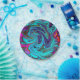 Aqua Blue and Black Groovy Abstract Retro Art Paper Plates