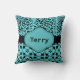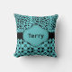 Edit both sides of this cool pillow with your preferred text. Add a monogram, a single initial, or some other text, make it personal. The design features cheetah animal print and floral print in aqua and black.
