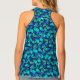 Aqua blue and black morpho butterfly patterned tank top