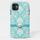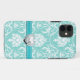 Aqua Blue and White Damask Pattern with Monogram Case-Mate iPhone Case