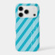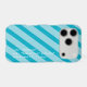 A short, personalized message of encouragement in Python programming language and stripes provide a tech, fashion forward design while protecting your phone. The design's background consists of shades of aqua blue diagonal stripes. The custom message is in white text. The font, color, and location of the text may be changed by using the Edit Design option.