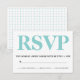 Aqua blue and white typography geometric wedding RSVP response card. The back includes an aqua blue and white geometric pattern.