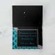 Aqua Blue & Black Damask Gem Sparkle Thank You Card