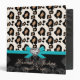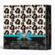 A sweet and stylish wedding planner, organizer or photo album with a trendy black, cream, brown and gold leopard spot print pattern and a bright aqua blue ribbon look design and faux heart shaped rhinestone diamond bling. Please, note, no three dimensional embellishments have been added to this album. The design will be printed flat and look as shown in the product preview image. The front, spine and the back of this binder can be customized with your own wording. Artwork © Chrissy H. Studios, LLC. All rights reserved.