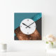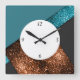 Aqua blue bronze sparkles design with numbers square wall clock