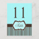 This aqua blue, brown, and white stripes and floral damask table number postcard matches the wedding invitation shown below. You must change the number 11 to each number that you need, add it to your cart, and then come back and repeat the process with each number that you need. Quantity discounts may apply once you add all the items to your cart. If you have any questions, contact me at niteowlstudio@gmail.com.